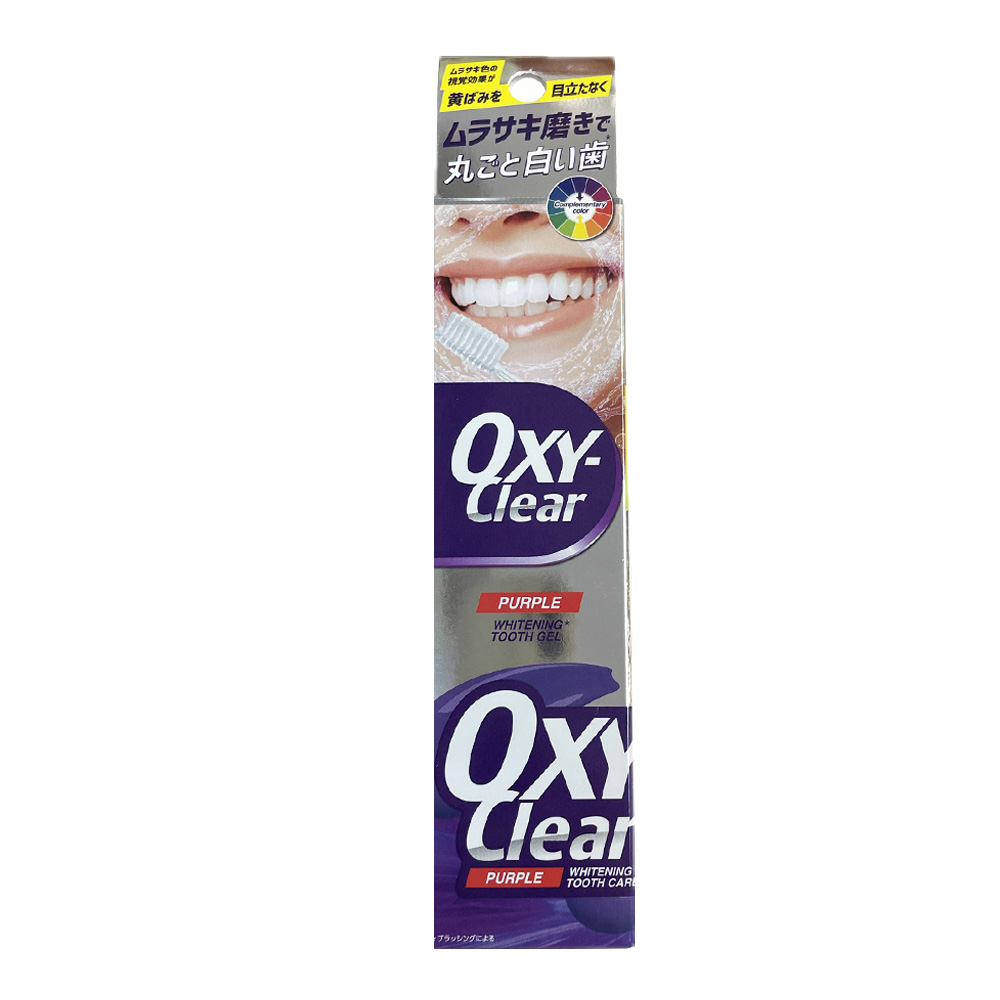 紫色で歯を磨くことで、くすみや黄ばみに対して、歯が白く輝いて見えるような補色効果。